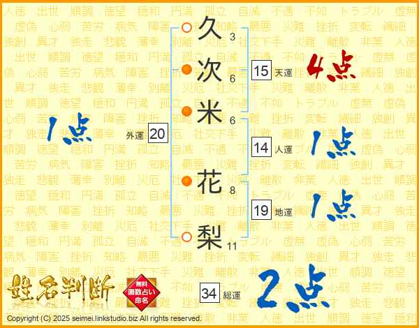 久(3画)次(6画)米(6画) 花(8画)梨(11画)