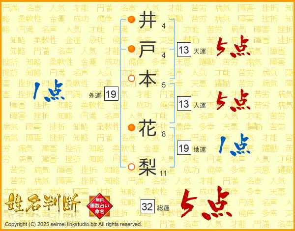 井(4画)戸(4画)本(5画) 花(8画)梨(11画)