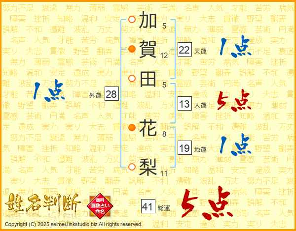 加賀田花梨さんの総運は41画の5点!