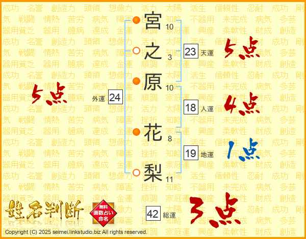 宮之原花梨さんの天運は23画の5点!