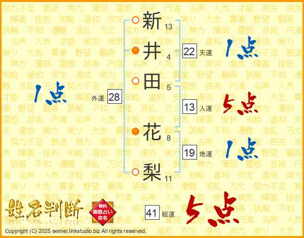 新井田花梨さんの総運は41画の5点!