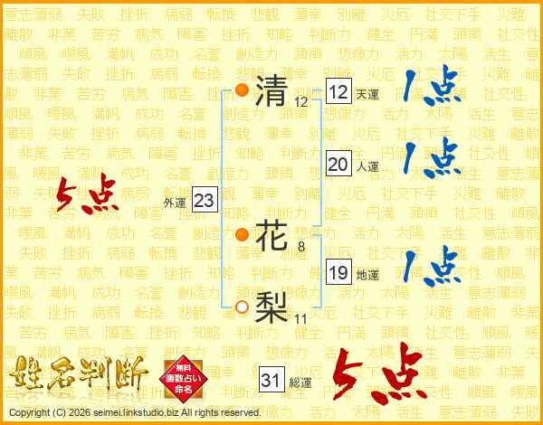清花梨さんの総運は31画の5点!