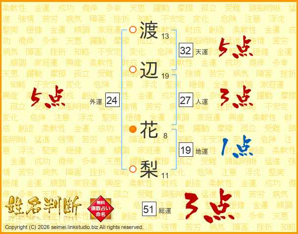 渡辺花梨さんの総運は51画の3点!