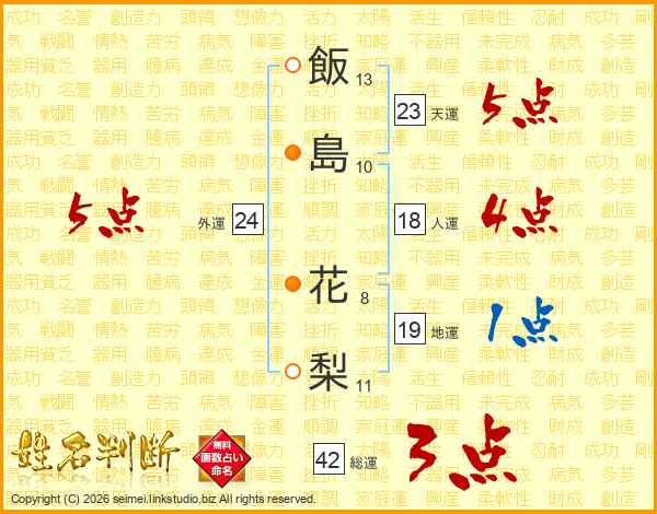 飯島花梨さんの天運は23画の5点!