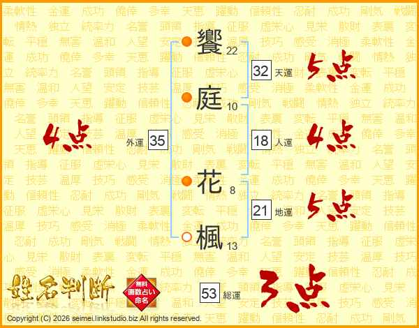 饗庭花楓さんの総運は53画の3点!