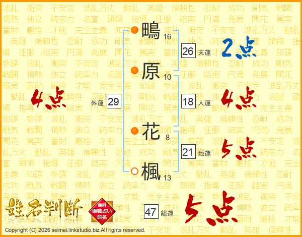 鴫原花楓さんの天運は26画の2点!