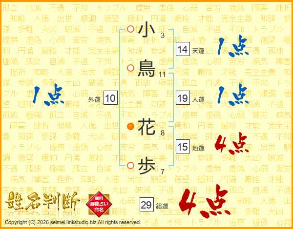 小鳥花歩さんの総運は29画の4点!