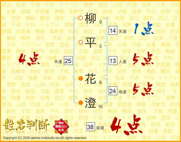 柳平花澄さんの総運は38画の4点!