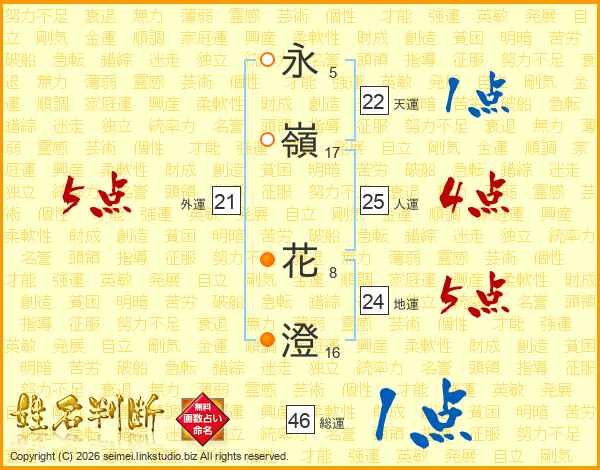永(5画)嶺(17画) 花(8画)澄(16画)