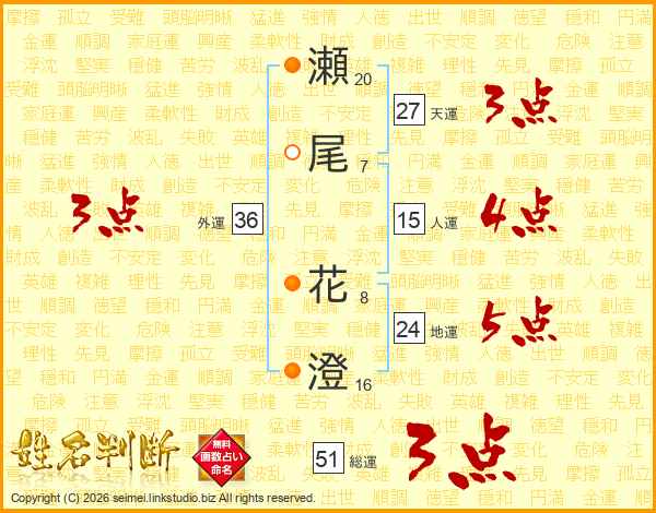 瀬尾花澄さんの総運は51画の3点!