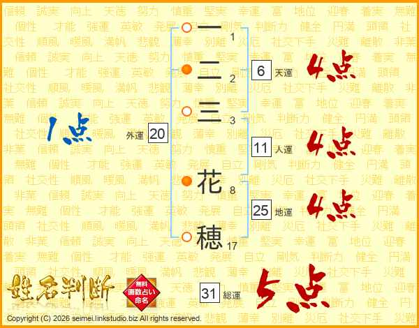 一二三花穂さんの総運は31画の5点!