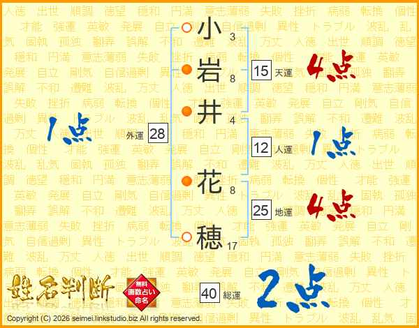 小岩井花穂さんの総運は40画の2点!