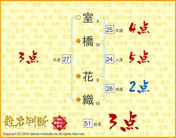 室橋花織さんの総運は51画の3点!