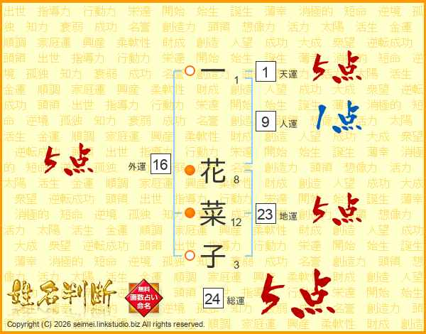 一花菜子さんの外運は16画の5点!
