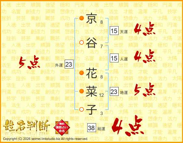 京谷花菜子さんの総運は38画の4点!
