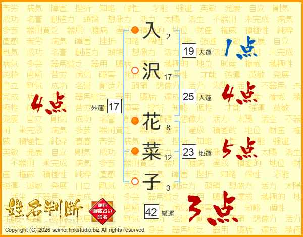 入沢花菜子さんの人運は25画の4点!