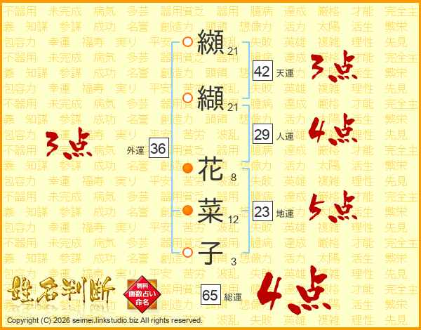 纐纈花菜子さんの総運は65画の4点!