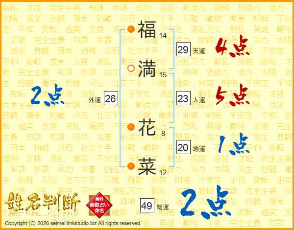 福(14画)満(15画) 花(8画)菜(12画)