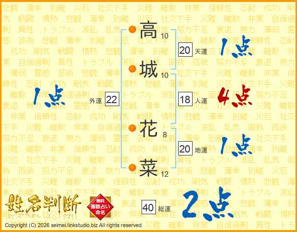 高城花菜さんの総運は40画の2点!