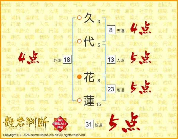 久代花蓮さんの総運は31画の5点!