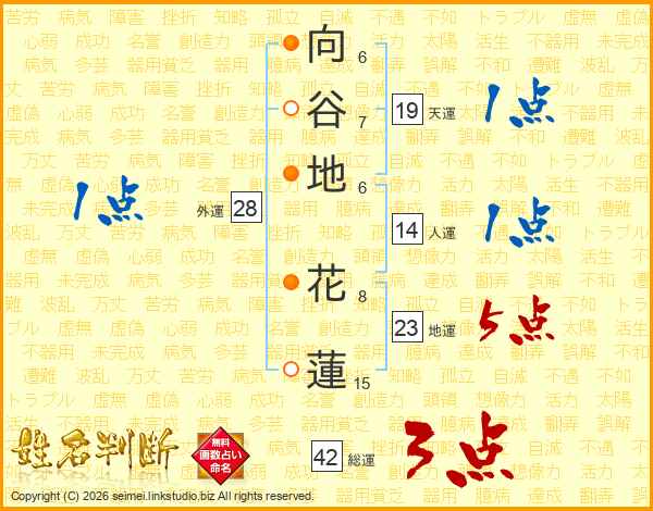 向谷地花蓮さんの総運は42画の3点!