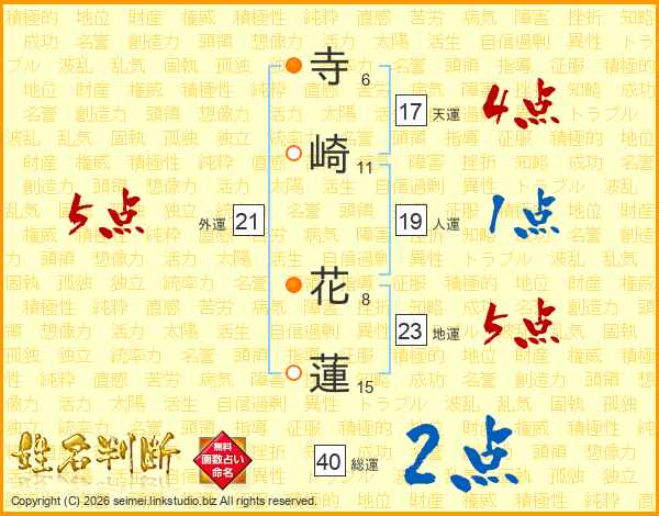 寺(6画)崎(11画) 花(8画)蓮(15画)