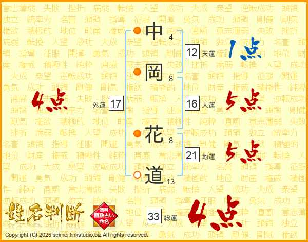 中岡花道さんの総運は33画の4点!
