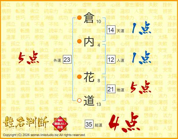倉内花道さんの総運は35画の4点!