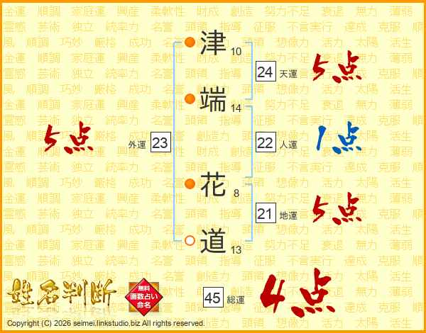 津端花道さんの総運は45画の4点!