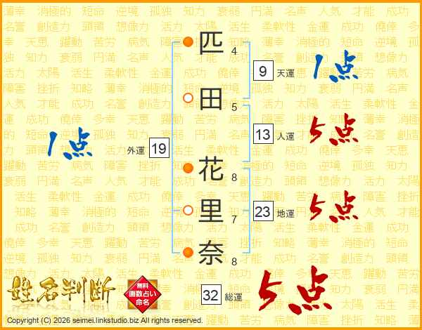 匹田花里奈さんの人運は13画の5点!