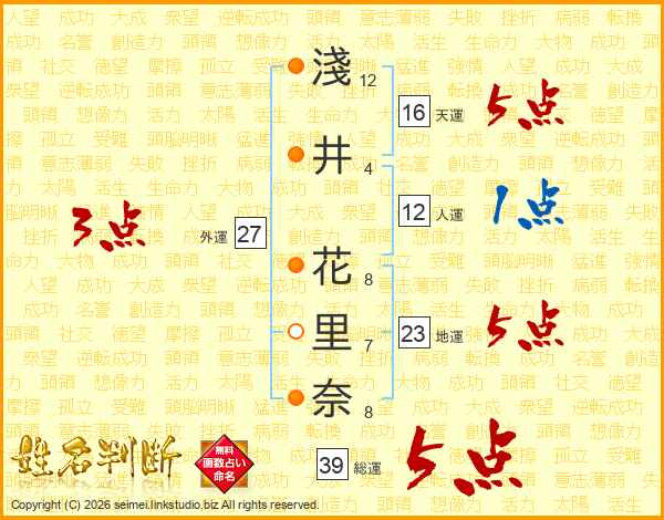 淺井花里奈さんの総運は39画の5点!