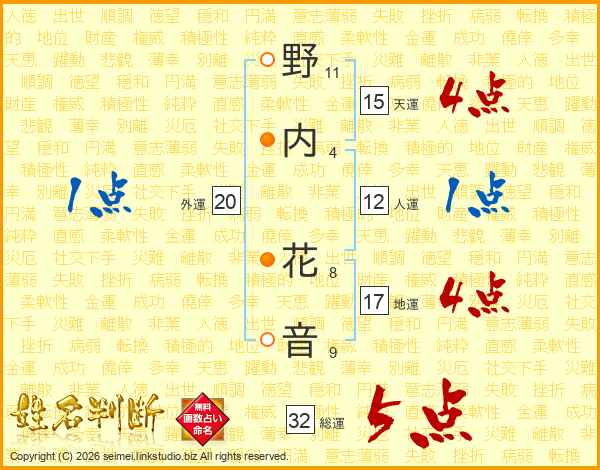 野内花音さんの総運は32画の5点!