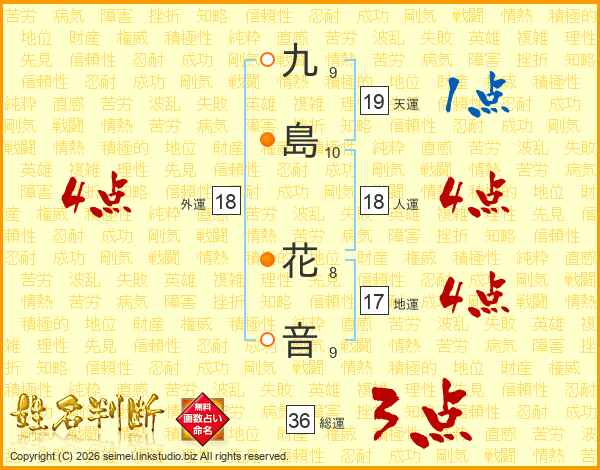 九(9画)島(10画) 花(8画)音(9画)