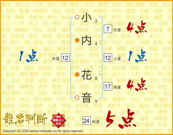 小内花音さんの総運は24画の5点!