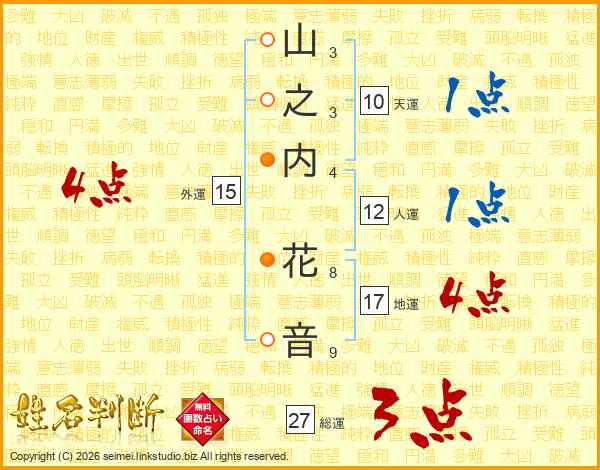 山之内花音さんの外運は15画の4点!