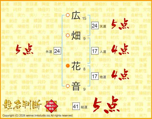 広畑花音さんの総運は41画の5点!