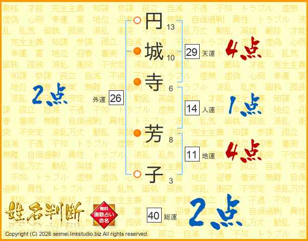 円城寺芳子さんの総運は40画の2点!
