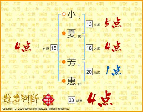 小夏芳恵さんの総運は33画の4点!