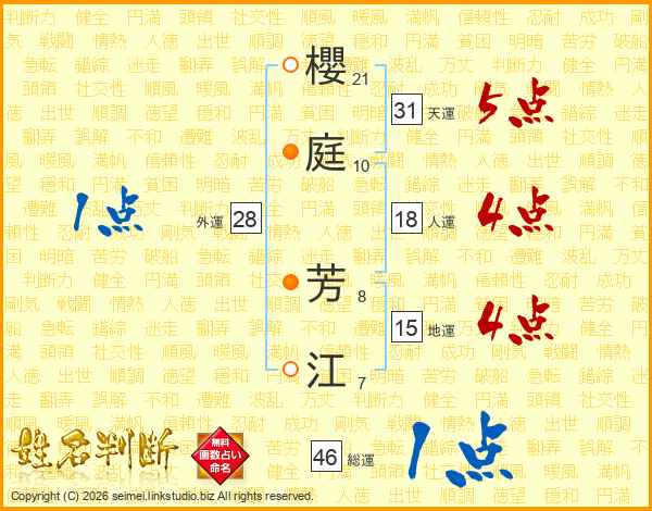 櫻庭芳江さんの総運は46画の1点!
