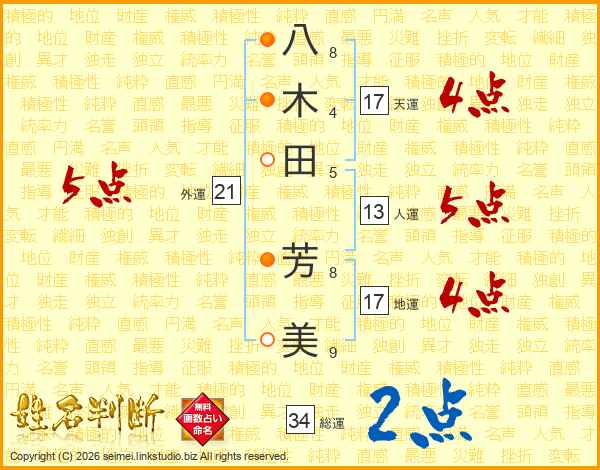 八木田芳美さんの総運は34画の2点!