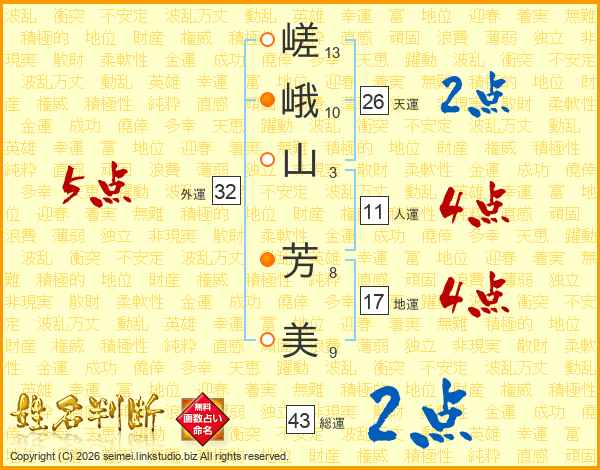 嵯峨山芳美さんの天運は26画の2点!