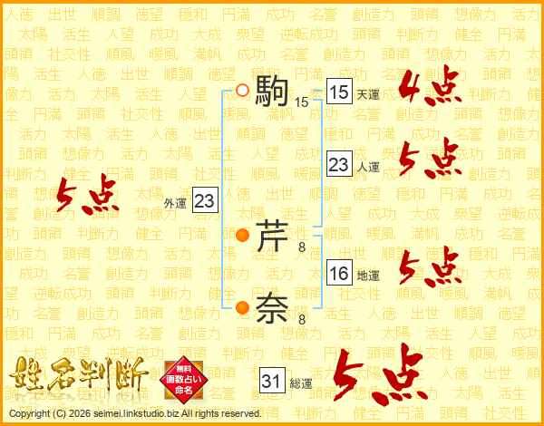 駒芹奈さんの総運は31画の5点!