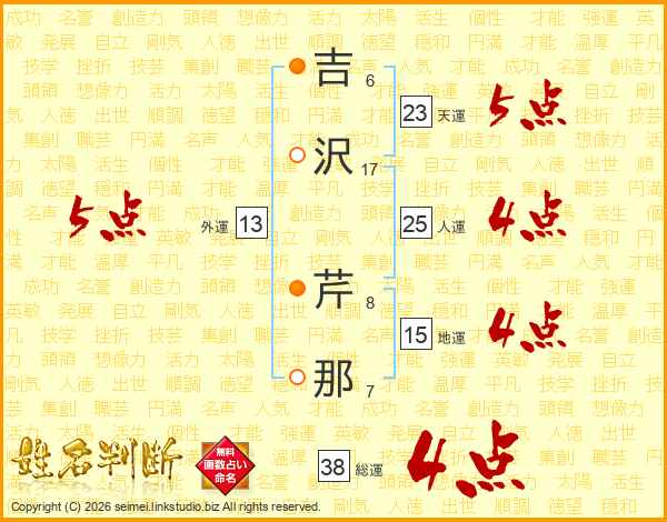 吉沢芹那さんの外運は13画の5点!