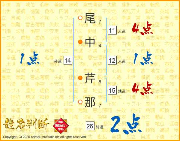 尾中芹那さんの総運は26画の2点!