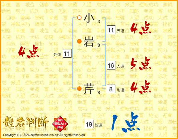 小岩芹さんの総運は19画の1点!