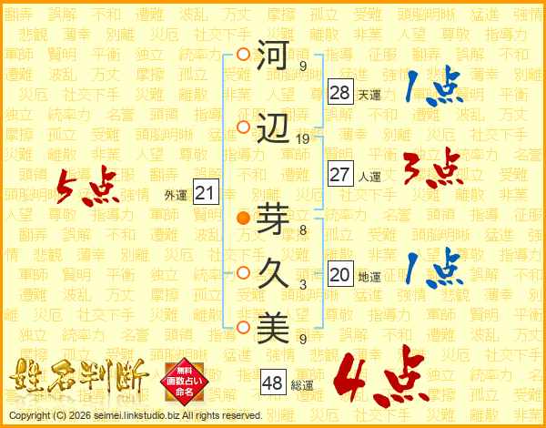 河辺芽久美さんの総運は48画の4点!