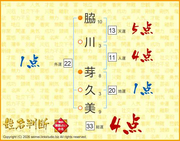 脇川芽久美さんの総運は33画の4点!