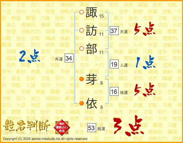 諏(15画)訪(11画)部(11画) 芽(8画)依(8画)