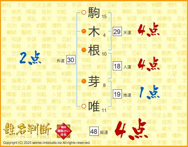 駒木根芽唯さんの総運は48画の4点!