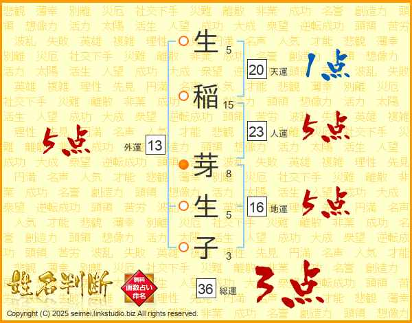 生稲芽生子さんの外運は13画の5点!